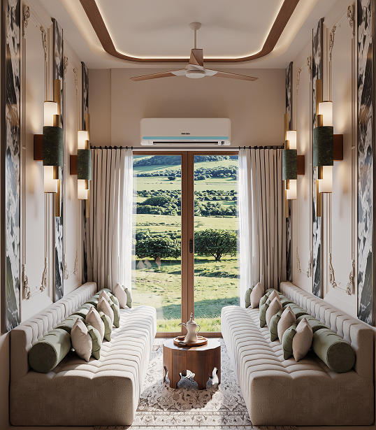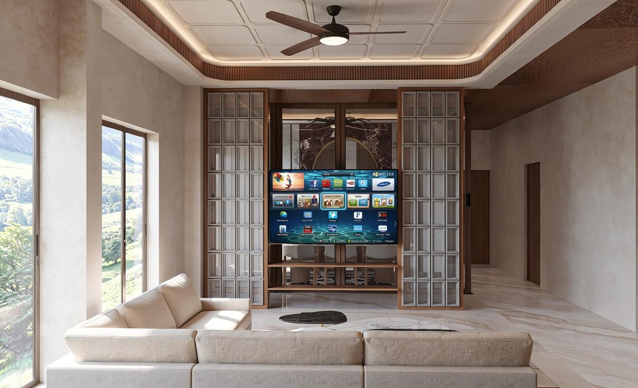 Ahmed Abode is a thoughtfully designed residential project that reflects a perfect balance of modern interior design, elegant aesthetics, and functional living. This home features a beautifully crafted living room, stylish TV unit, and a well-planned modular kitchen with premium finishes and smart storage solutions. The use of warm tones, ambient lighting, and contemporary false ceiling design enhances the overall look, creating a sophisticated yet welcoming atmosphere.