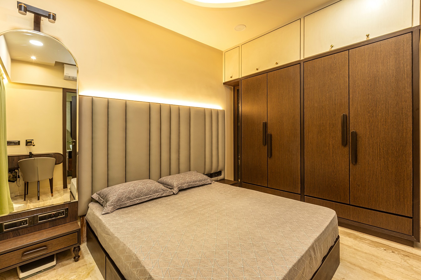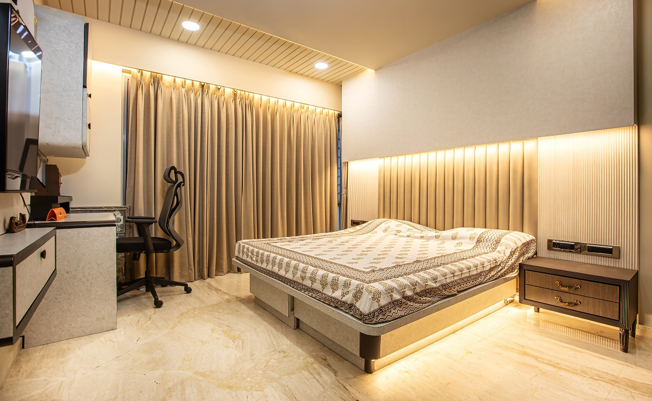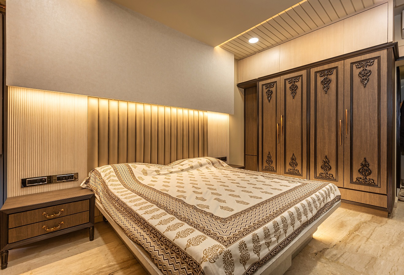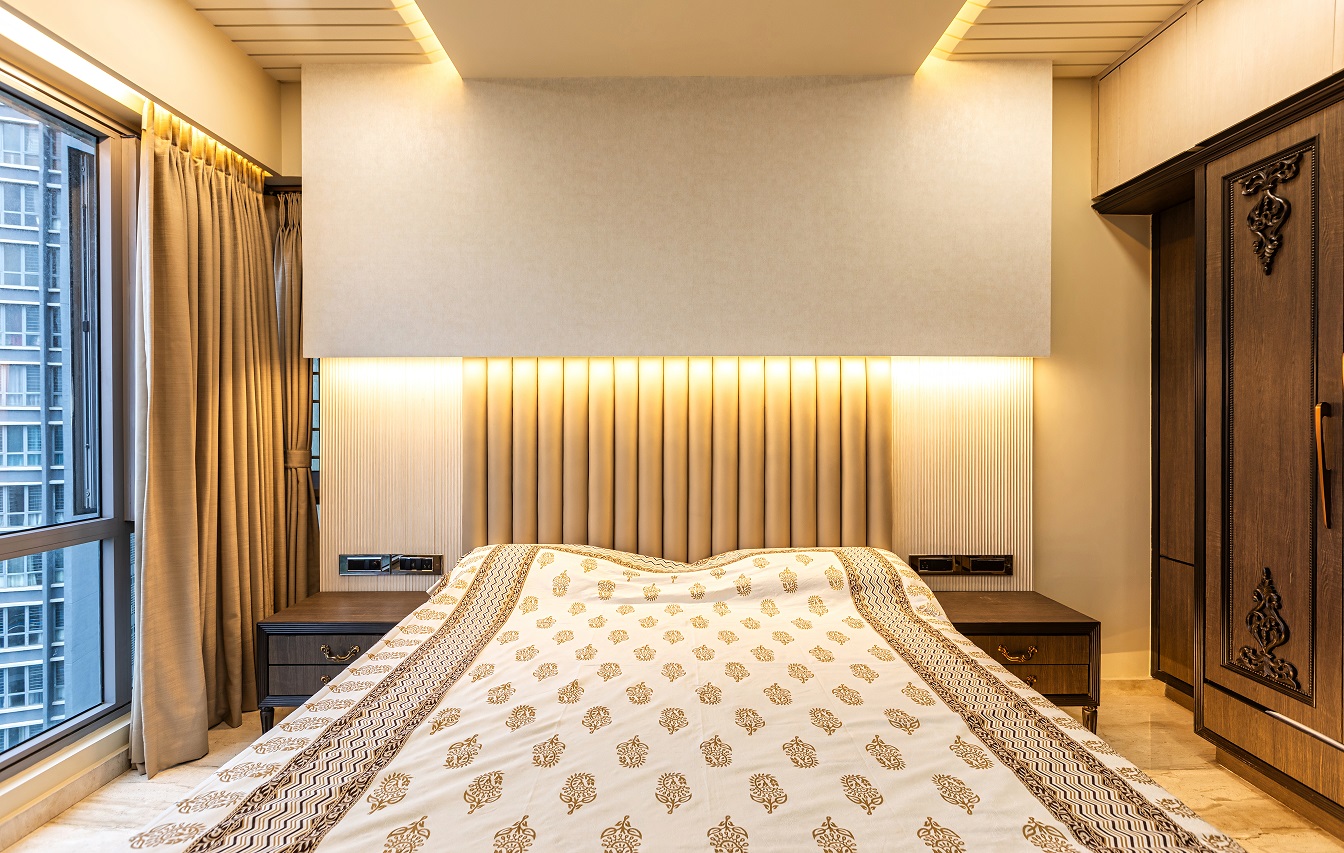 Cozy, warm lighting paired with elegant ceiling detailing for a refined ambiance.