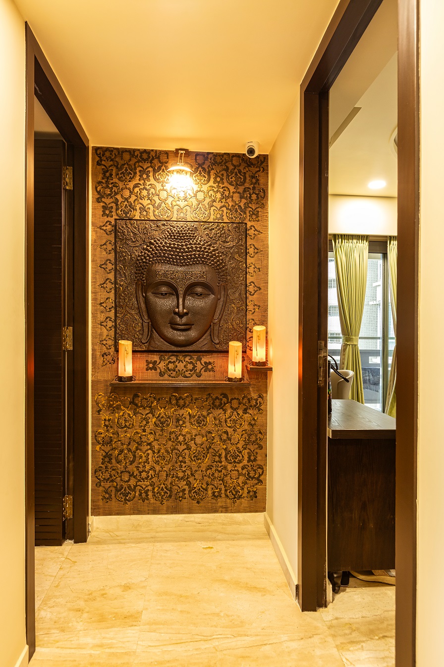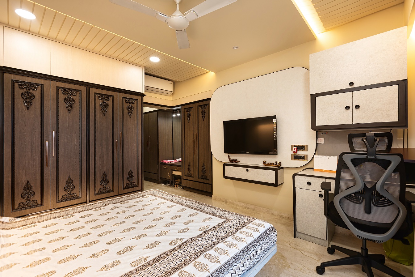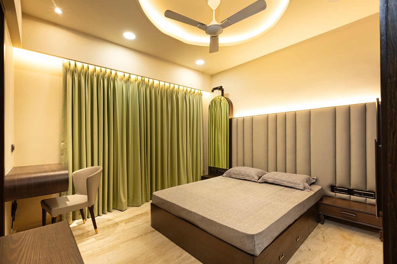 Cozy, warm lighting paired with elegant ceiling detailing for a refined ambiance.