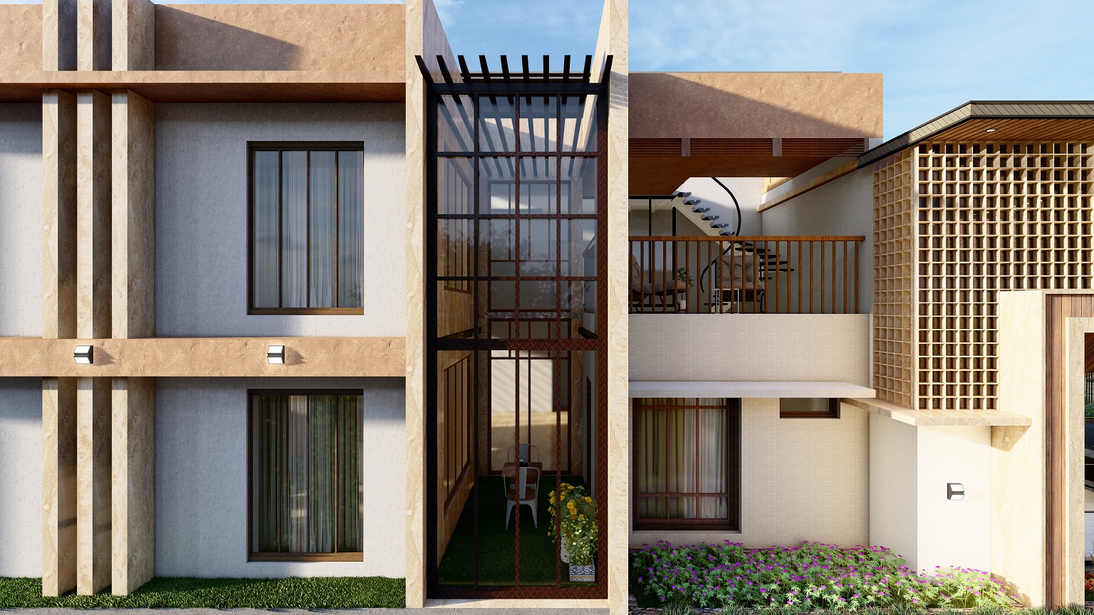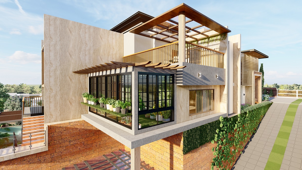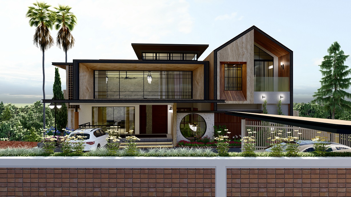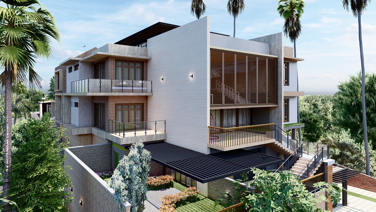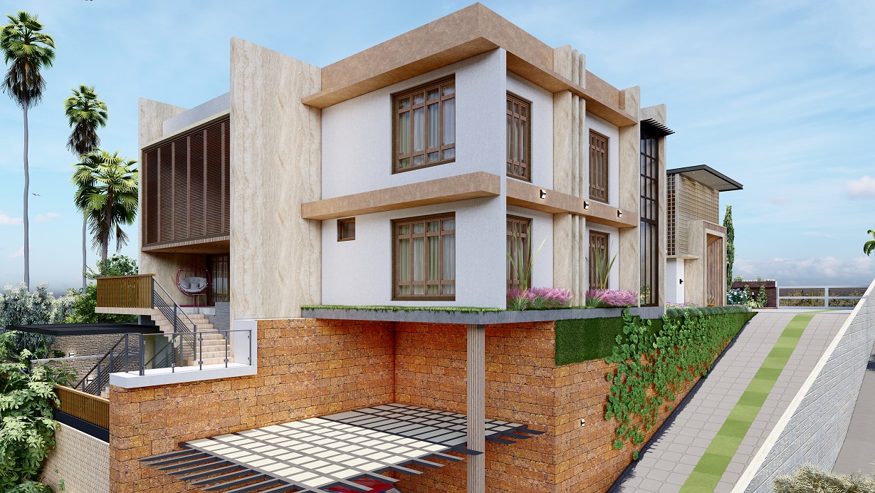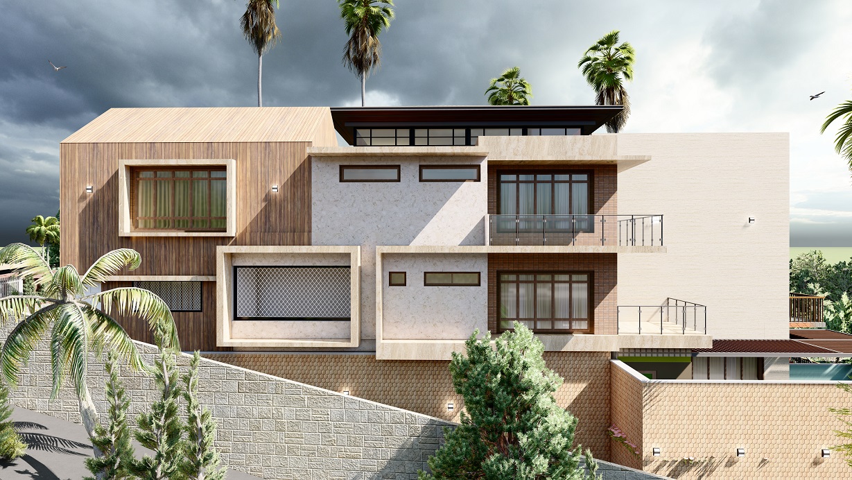 Mubarak Mahal, located in Kerala, is a stunning 5000 SQFT residential masterpiece designed for modern living and luxury. With a perfect blend of contemporary architecture and natural elements, the villa offers spacious living areas, expansive balconies, and premium finishes throughout. The villa’s design features large windows for abundant natural light, while the open layout ensures a seamless flow of space. The exterior features a beautiful combination of brick and greenery, while the interiors focus on comfort, functionality, and elegance.