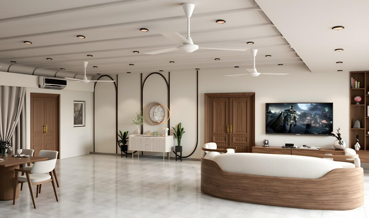 Modern ceiling design with strategically placed lighting to enhance the room's ambiance.